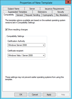 and choose Duplicate Template. - In the Compatibility tab, set the following values: